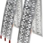 - 【Lightweight&Sturdy Aluminum Loading Ramps】Metal foldable truck ramp’s net weight is only 16 lbs(each)and its load capacity of 750 lbs each, combined rating 1500 lbs. Before use, please confirm the weight of the machine you will carry, please do not exceed the max capacity.