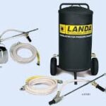 For the extra-tough cleaning jobs, wet-sandblasting is the dust-free solution. Landa’s sandblasters attach to a hot or cold water pressure washer and, using a venturi, mixes sand or other abrasive media with the high-pressure spray to create enough cleaning power to strip paint off concrete and barnacles from a ship’s hull. The sandblasting nozzle is made of tungsten carbide for long life. There are two models—a top-of-the-line steel pot (photo at right) with tight-fitting lid or with a probe only.